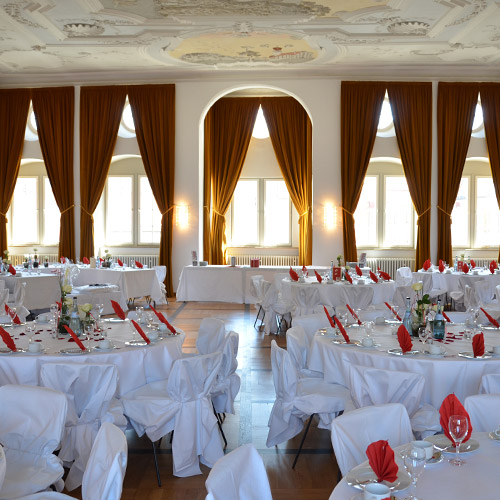 Salzstadel – Ursprünglich war es 64m lang, das Salzlager an der Salzstraße von Hall nach Lindau. Heute steht Ihnen jedoch immer noch ein Veranstaltungsraum mit stattlichen 32m Länge zur Verfügung, der mit Tischbestuhlung bis zu 180 Menschen Platz gewährt.